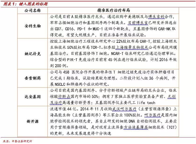 第三,从催化上看,4月底-5月初将要推出的医药十三五规划中“医药产业创新升级”将是最核心的关键词所在,预计精准医疗及与癌症治疗相关的免疫治疗与CAR-T将成为十三五中医药发展的重点方向。